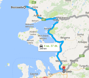 ***İzmir – Bozcaada arası uzaklık (karayolu en yakın) :299 Km